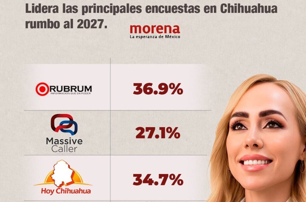 Chihuahua.– A un año de la elección municipal de 2027, Brenda Ríos se consolida como la puntera de Morena en la capital del estado, de acuerdo con prácticamente todas las encuestas recientes sobre intención de voto.