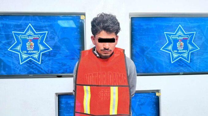 Ciudad Juárez .- Agentes de la Secretaría de Seguridad Pública Municipal capturaron a Juan Manuel G. S., por su presunta responsabilidad en la comisión de delitos contra la salud, mismo que será investigado por su probable participación en robos a casa comercial con lujo de violencia.