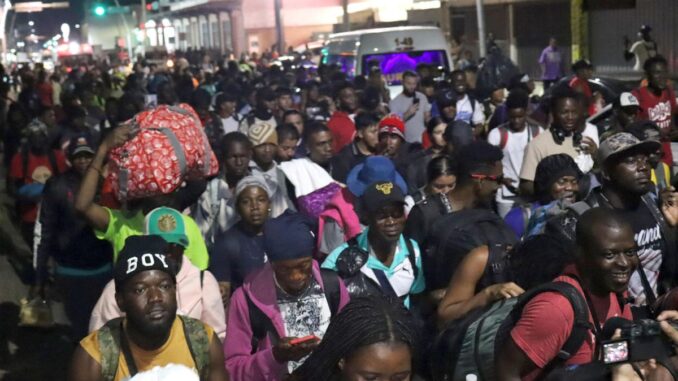 Los aproximadamente 800 migrantes originarios de Haití, Cuba, Colombia, Venezuela, Honduras, El Salvador y Guatemala, llegó la tarde del 29 de marzo a Pijijiapan.