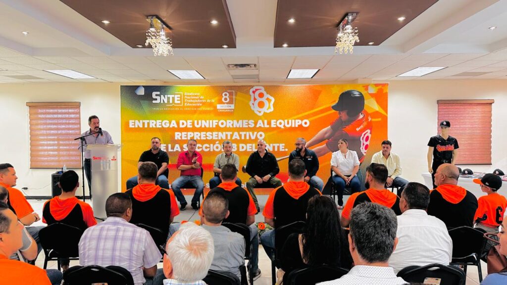 En un evento de gran valía para la familia magisterial el Secretario General de la Sección 8 del SNTE, Eduardo Zendejas, hizo entrega de los uniformes con el cual la escuadra sindicalista se apunta para enfrentar a su similar de Familia Nolasco en la semifinal de la Liga Municipal Chihuahua de Sóftbol Rápido.
