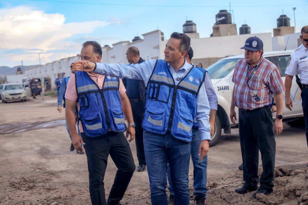 Chihuahua.- El alcalde Marco Bonilla, volvió a las colonias Praderas del Sur y Privadas del Sur, para seguir con los apoyos por las recientes lluvias.