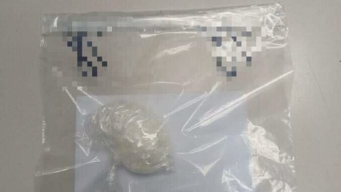 Durante la revisión, se localizó entre sus pertenencias una bolsa de plástico que contenía 88 envoltorios con una sustancia blanca y sólida con las características propias de la cocaína en piedra, con un peso total de 18.4 gramos.