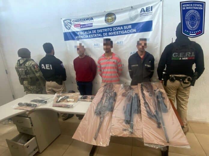Un operativo integrado por elementos de la Agencia Estatal de Investigación, Ejército Mexicano y Seguridad Pública Municipal, detuvo en flagrancia a tres masculinos, por su probable responsabilidad en el robo de un equipo de cacería y posesión simple de narcóticos, en hechos ocurridos ayer jueves en un inmueble ubicado el barrio de España.