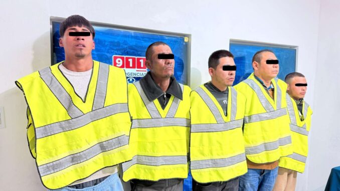 Por lo anterior, fueron detenidos quienes dijeron llamarse Joaquín H. P. de 19 años, Óscar C. P. de 44 años, Jorge Agustín A. F. de 44 años, Brayan Andrés R. A. de 19 años, y un adolescente de 17 años, por su presunta responsabilidad en la comisión de delitos contra la ley federal de armas de fuego y explosivos y delitos contra la salud.