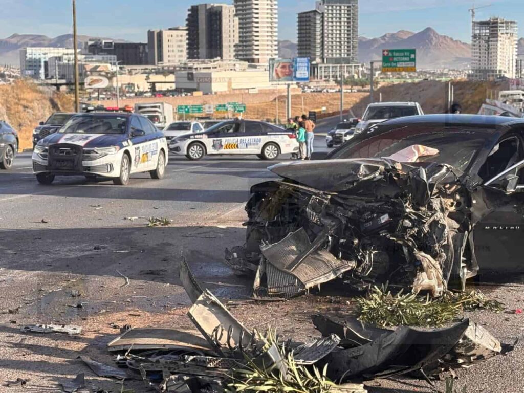 Noticias de Chihuahua.- El conductor de un Chevrolet Malibú, que circulaba de sur a norte, perdió el control al pasar por un tramo con agua sobre la cinta asfáltica. El vehículo brincó el camellón e invadió el carril contrario, donde terminó impactando de forma frontal–lateral contra un Jeep Gladiator que viajaba en sentido norte a sur.