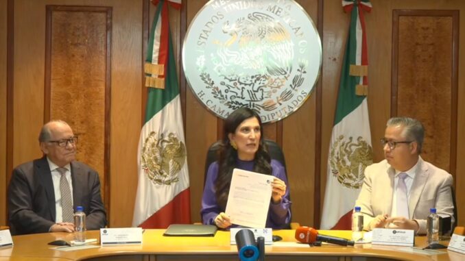 El documento fue recibido por la presidenta de la Mesa Directiva de la Cámara de Diputados, Kenia López Rabadán.
