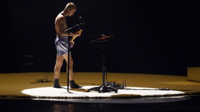 El cantante, que no se presentaba en escenarios de gran formato desde su gira Justice World Tour en 2022, utilizó una computadora para interactuar, aparentemente, con el público que le enviaba peticiones de canciones a través de la transmisión de YouTube.