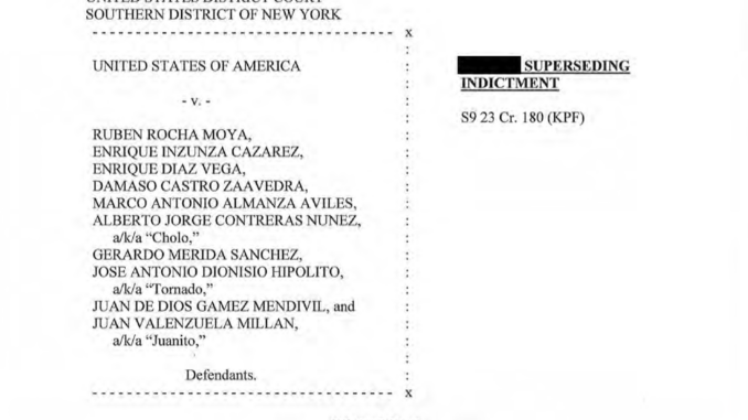 La Fiscalía del Distrito Sur de Nueva York divulgó la acusación contra un total de diez personas por supuestamente “conspirar con líderes del cártel de Sinaloa para importar cantidades masivas de narcóticos a EE.UU a cambio de apoyo político y sobornos”, indica un comunicado.
