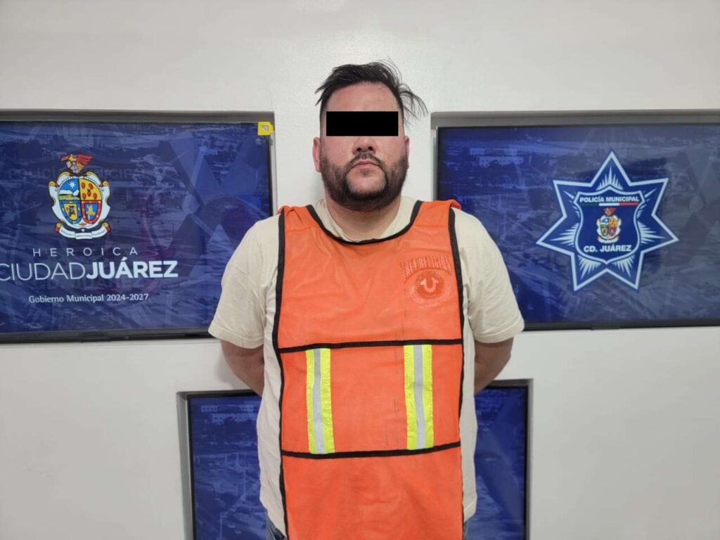 Ciudad Juárez.- Agentes de la Secretaría de Seguridad Pública Municipal adscritos a la Unidad Canina (K-9) arrestaron a David Omar B. M., por su presunta responsabilidad en la comisión de delitos contra la Ley Federal de Armas de Fuego y Explosivos, al ser sorprendido en posesión de un arma de fuego.