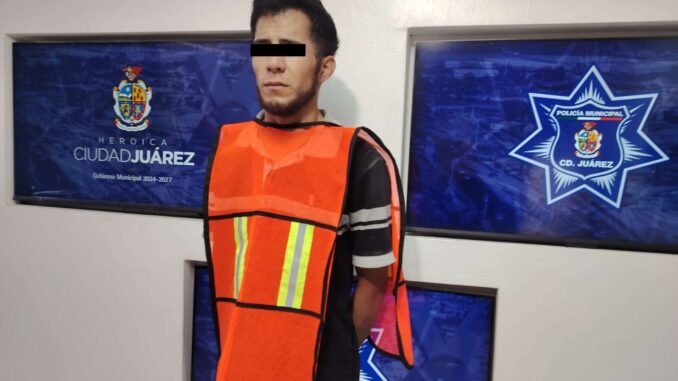 Ciudad Juárez.- Elementos de la Secretaría de Seguridad Pública Municipal arrestaron a César Alexis C. M., por su presunta responsabilidad en la comisión del delito de posesión de vehículo con reporte de robo.