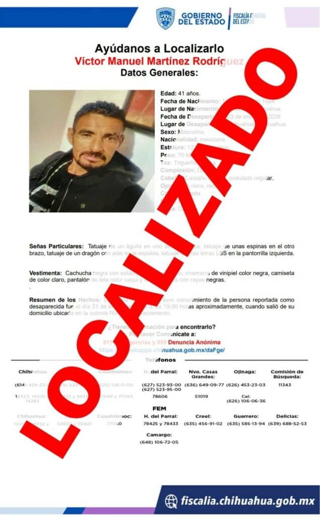 Mientras que Víctor Manuel M. R., era buscado desde el 3 de febrero del año en curso y finalmente, hoy pudo ser ubicado en Ciudad Juárez.