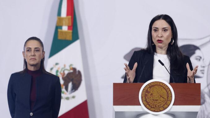 La secretaria de Cultura de México, Claudia Curiel, habla durante la rueda de prensa diaria de la presidenta de México, Claudia Sheinabaum, este viernes en Palacio Nacional de la Ciudad de México (México). EFE/Sáshenka Gutiérrez