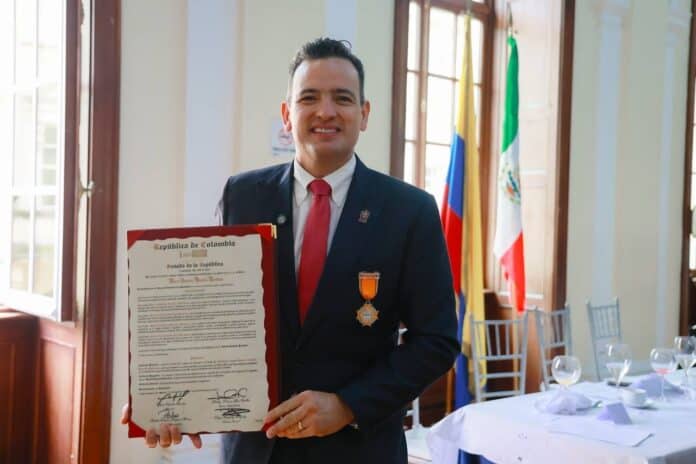 Chihuahua.- Por invitación del senado colombiano, el alcalde de Chihuahua Marco Bonilla, acudió a dicho país para recibir una condecoración por políticas públicas en materia de derechos de la familia y en seguridad que se realizan en Chihuahua Capital.