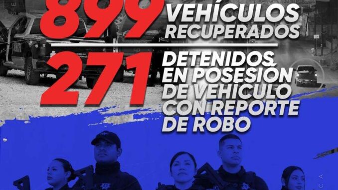 Como resultado del trabajo coordinado de los elementos de la policía municipal, durante el año 2025 se recuperaron un total de 899 vehículos con reporte de robo, mismos que fueron localizados gracias a los patrullajes preventivos, el uso de arcos lectores de placas, la implementación de operativos especiales y la atención oportuna a los reportes de la ciudadanía.