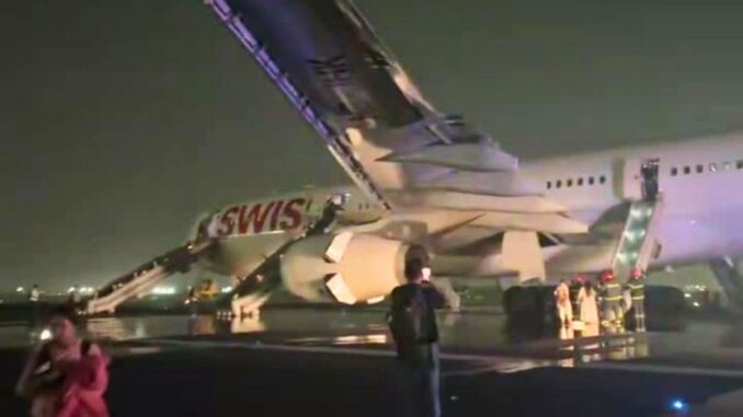 Al menos seis personas resultaron heridas la madrugada de esye domingo después de que un avión de la aerolínea suiza Swiss tuviera que evacuar a sus pasajeros durante el despegue en el aeropuerto de Nueva Delhi por un problema en un motor, que se incendió.